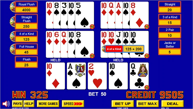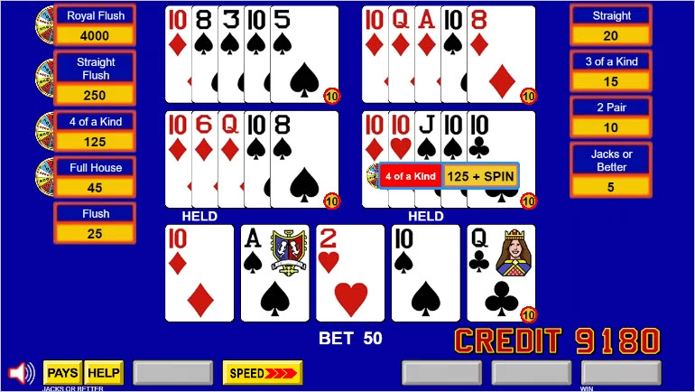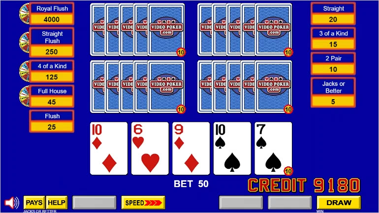 Neste exemplo, estou jogando 9-5 Jacks or Better no modo de cinco jogadas.