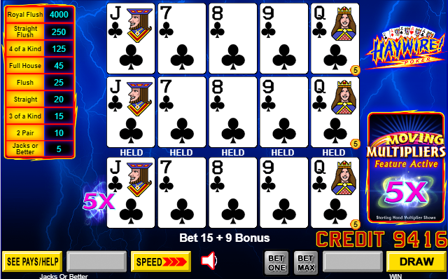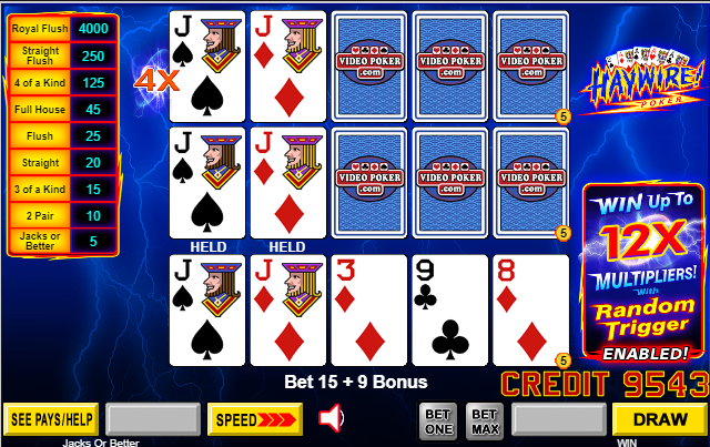 - O Haywire Poker é um recurso adicionado às máquinas de video poker multijogador convencionais de 3, 5 e 10 jogadores. Presume-se que o leitor já esteja familiarizado com o funcionamento do poker multijogador.