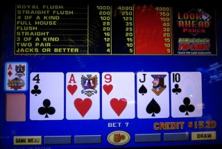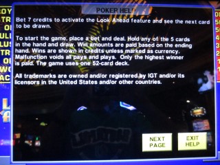Qualquer jogador profissional legítimo, ou mesmo um trapaceiro, pode lhe dizer que saber qual será a próxima carta a ser distribuída lhe confere uma grande vantagem. É exatamente isso que acontece no Super Look Ahead Poker. Após a distribuição das cartas, o jogo revela qual será a próxima. Infelizmente, a IGT não é tão tola a ponto de fornecer essa informação gratuitamente. Ela custa duas moedas a mais, além das cinco usuais, o que também contribui para aumentar um pouco a tabela de pagamentos. Abaixo estão as regras completas.