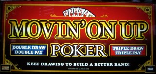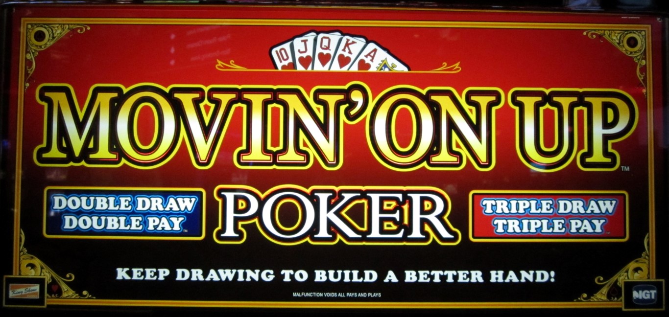"Movin' On Up" não é apenas a música tema de Os Jeffersons, mas também uma variante de video poker da IGT. Eu a vi pela primeira vez no Peppermill em Reno, em junho de 2013. A ideia principal do jogo é que, com uma aposta adicional, o jogador recebe duas ou três rodadas em vez de uma.