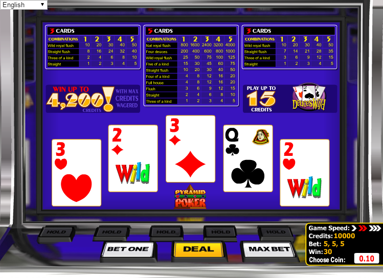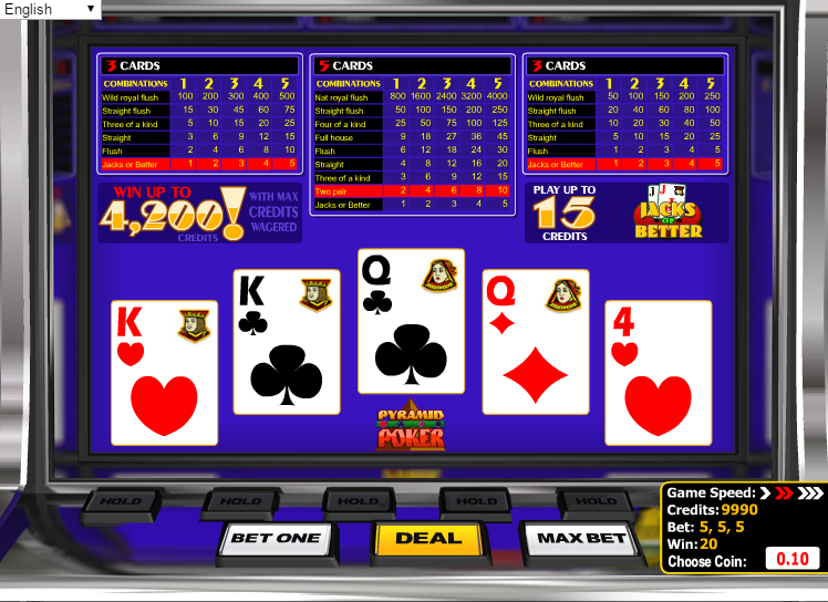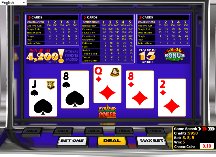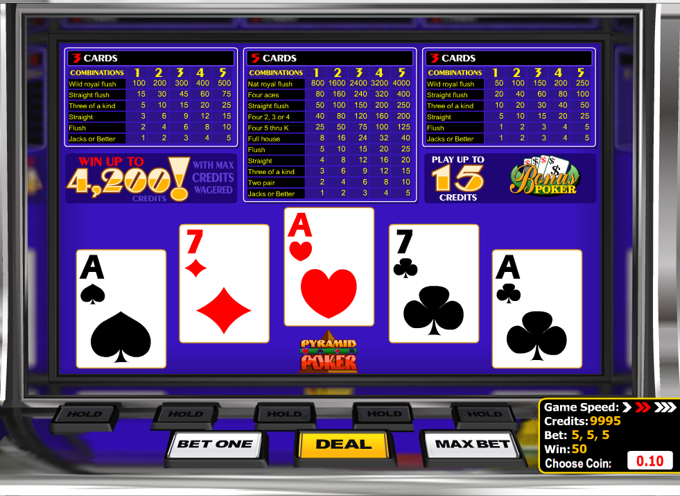 Pyramid Bonus Poker é um jogo de vídeo pôquer da BetSoft que paga de três maneiras: a mão completa de cinco cartas, as três cartas da esquerda e as três cartas da direita. Se você procura um jogo de vídeo pôquer desafiador em termos de estratégia, não há nada mais complexo do que isso.