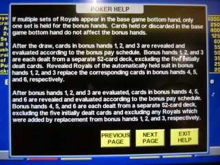 - Caso o jogador receba dois conjuntos de duas cartas reais de naipes diferentes, o jogo escolherá os dois com o maior valor esperado para as seis mãos de bônus.