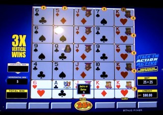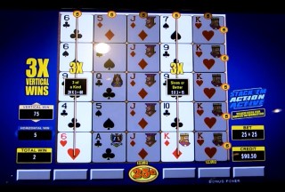 - O jogador também terá direito a multiplicadores nas mãos verticais, de acordo com o número de descartes na mão original. Se o jogador tiver zero ou cinco cartas, nenhum multiplicador estará disponível. Detalhes sobre os multiplicadores possíveis e médios são mostrados na tabela a seguir. A coluna "Multiplicador Médio" mostra o multiplicador médio a ser aplicado à vitória, após considerar a probabilidade de um multiplicador e a média desses multiplicadores.