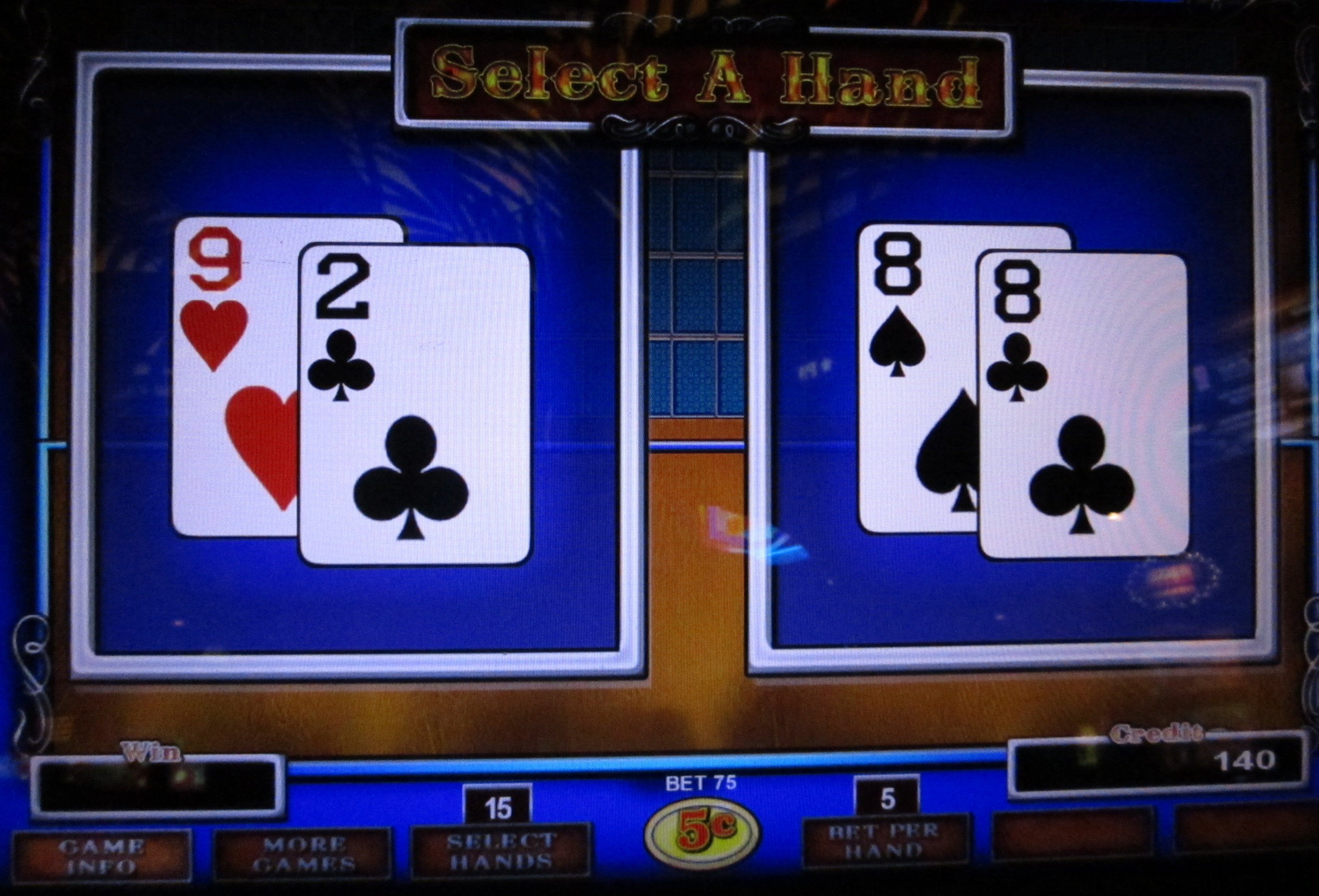 Na imagem acima, eu tinha que escolher entre começar com 9-2 fora do naipe ou um par de oitos. Escolhi os oitos.