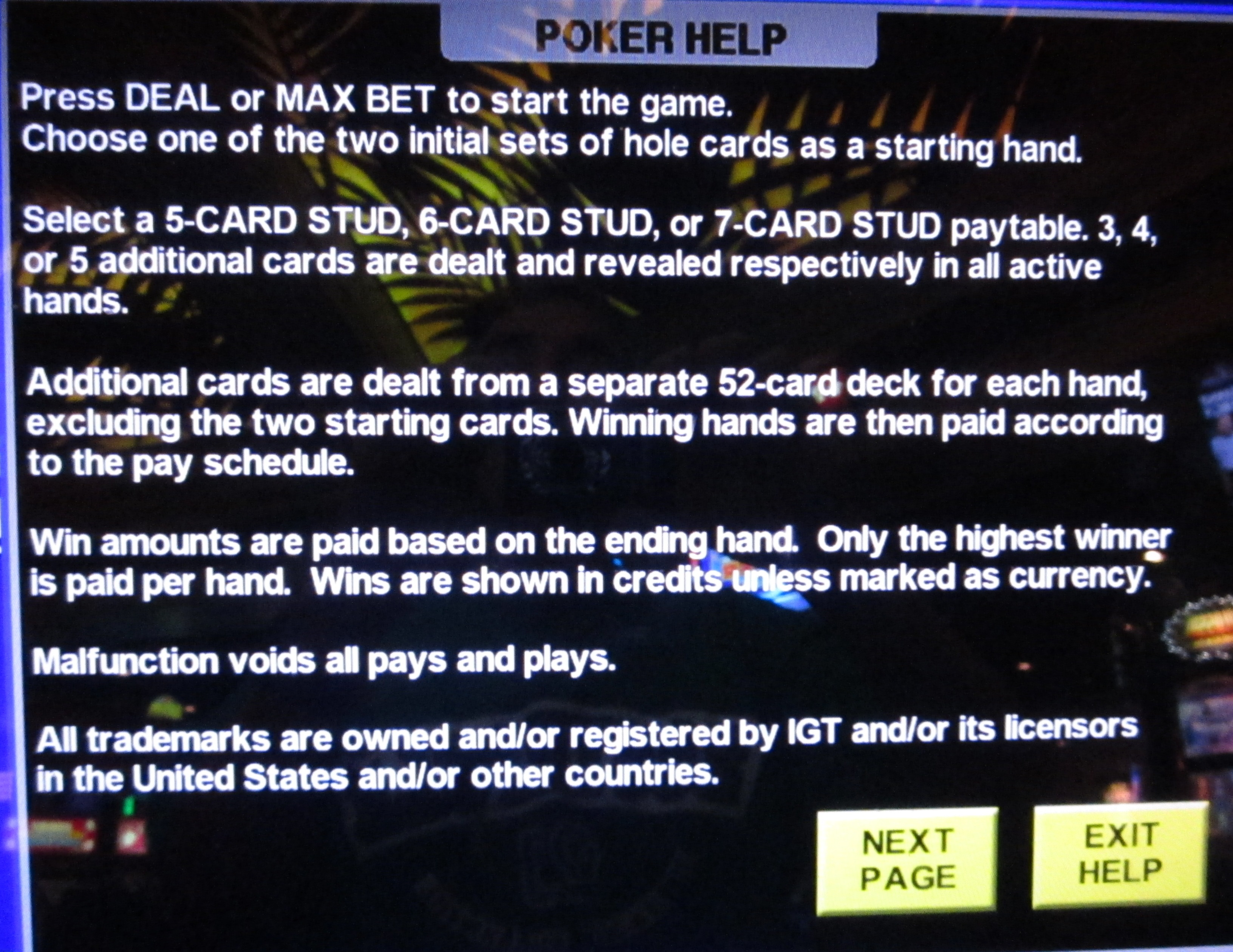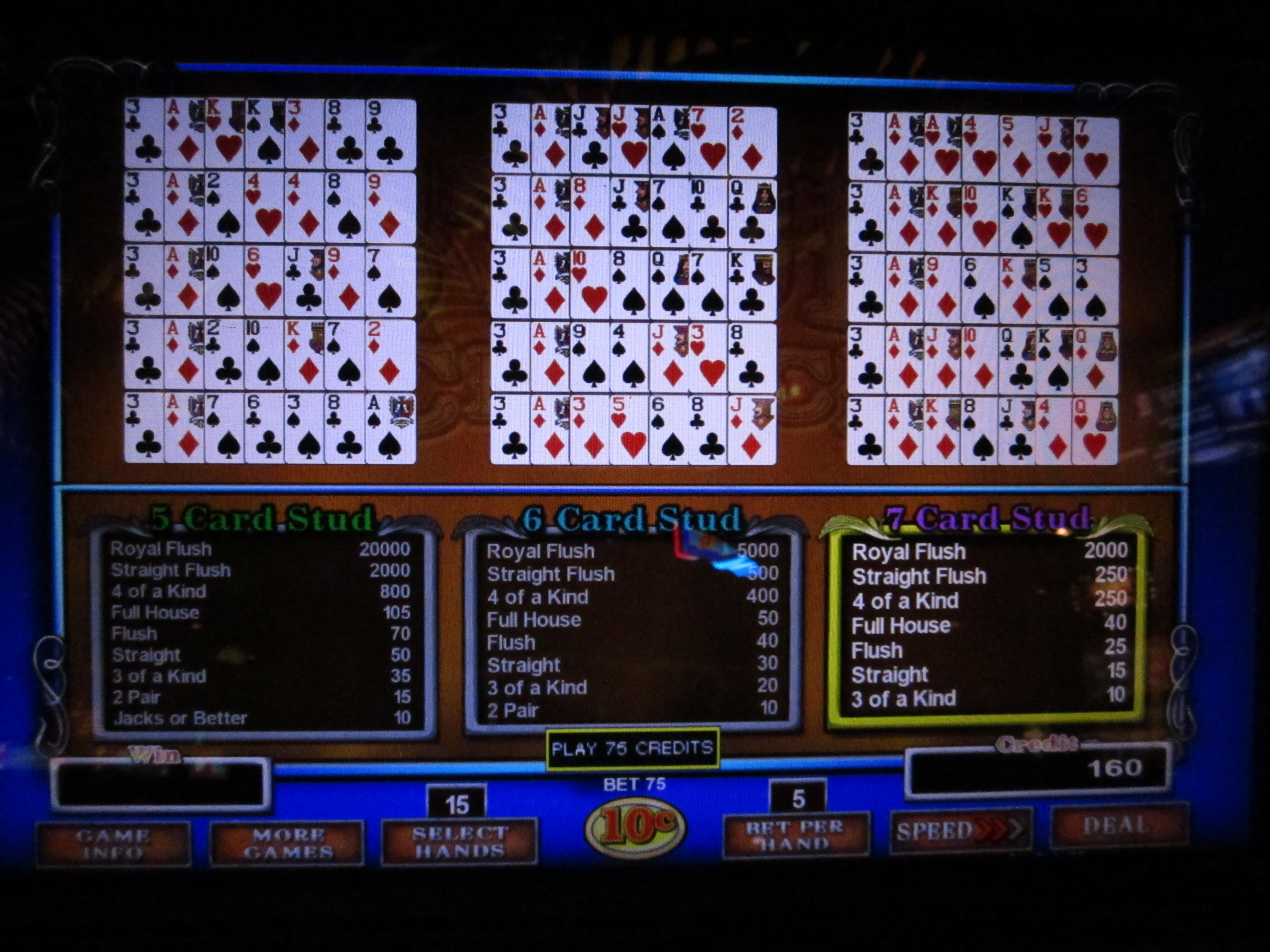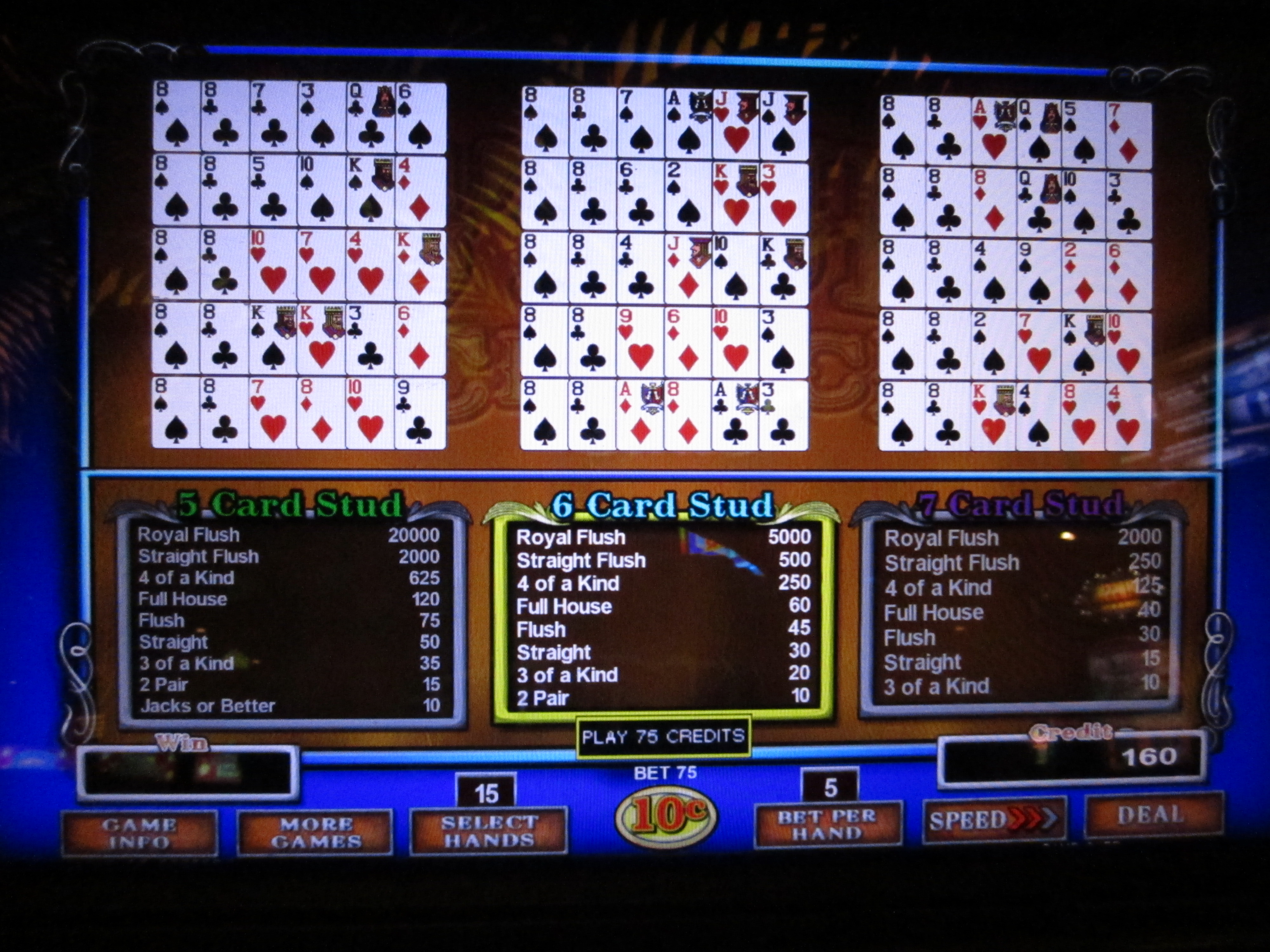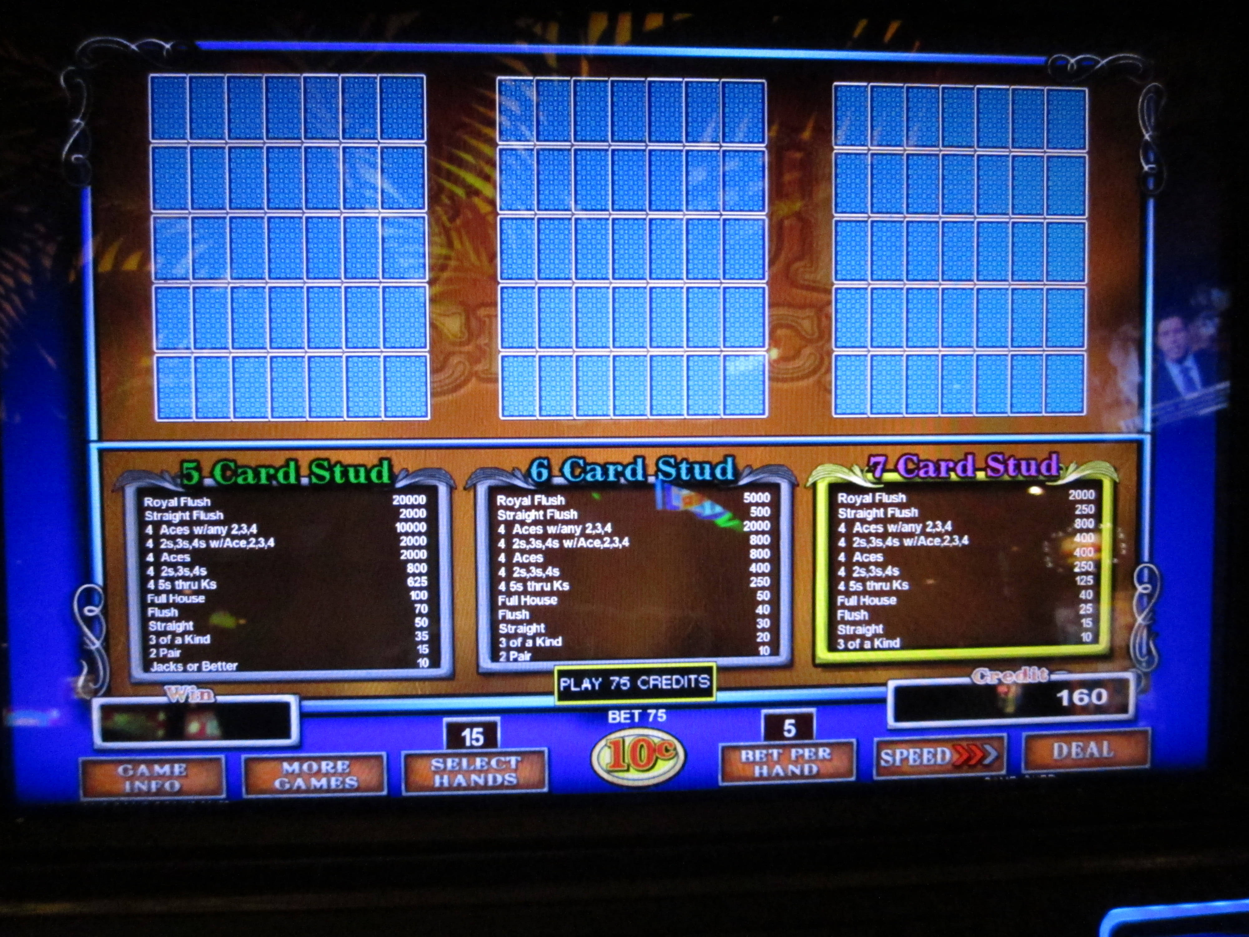 - O jogo irá clonar as 50 cartas restantes, incluindo as duas da mão não escolhida, em tantos baralhos quanto o número de mãos em que o jogador apostou. Em seguida, o jogo distribuirá cartas aleatórias para completar cada mão, de acordo com a escolha do jogador: five-card stud (cinco cartas), six-card stud (seis cartas) ou seven-card stud (sete cartas).