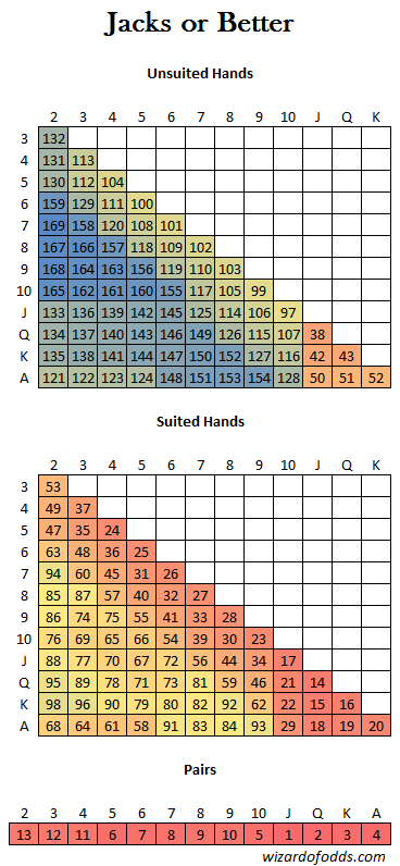 A estratégia a seguir é adequada para o jogo Jacks or Better com as seguintes tabelas de pagamento. Os ganhos são expressos por moeda, com base em cinco moedas apostadas por mão.