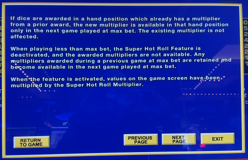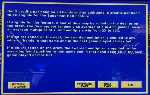 - Super Hot Roll é um recurso opcional adicionado ao video poker de 3, 5 e 10 jogadores.