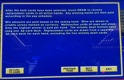 - Se o jogador apostar de uma a cinco moedas por mão, o recurso não será ativado e o jogo funcionará como um video poker multijogador convencional.