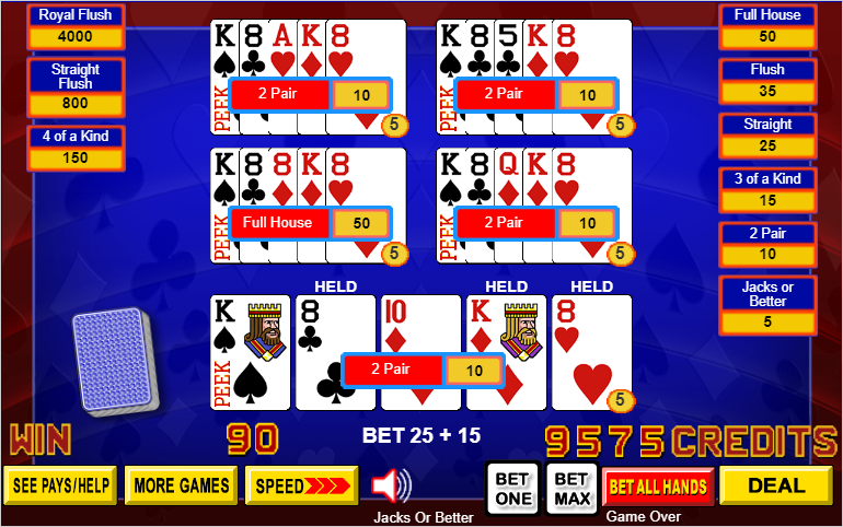 - Super Peek and Play é um recurso opcional adicionado ao video poker multijogador, com o qual presumo que o leitor já esteja familiarizado.
