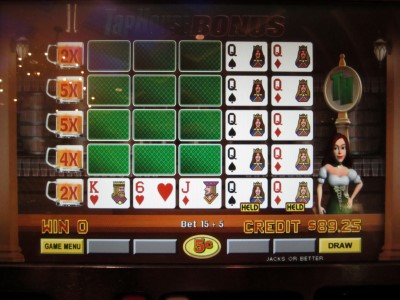 Na mão acima, recebi uma trinca, o que me deu direito ao bônus.