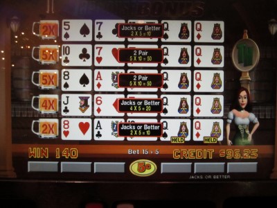 A tabela a seguir mostra a probabilidade de cada mão na distribuição inicial e o multiplicador esperado para as mãos bônus. A célula inferior direita mostra que, para cada mão na distribuição inicial, o jogador pode esperar um multiplicador médio de 2,650984 em cada mão bônus, assumindo que o jogador ganhe o bônus.