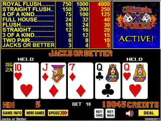 Ultimate X é uma variante popular de video poker. A diferença é que, se o jogador dobrar a aposta, qualquer mão vencedora não só paga de acordo com a tabela de pagamentos, como também concede um multiplicador na mão seguinte. Esta página aborda a versão de linha única do Ultimate-X Poker, que pode ser encontrada nas máquinas Five Star. Tenho uma página separada para a versão de múltiplas linhas .
