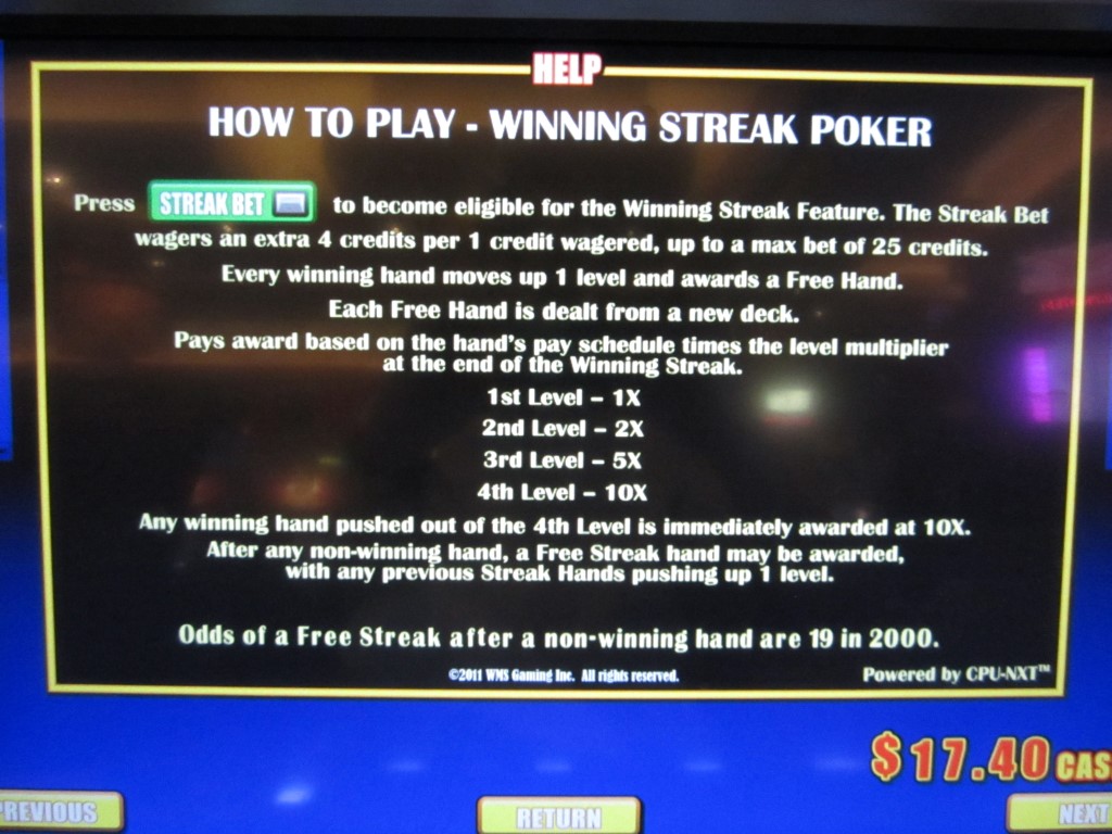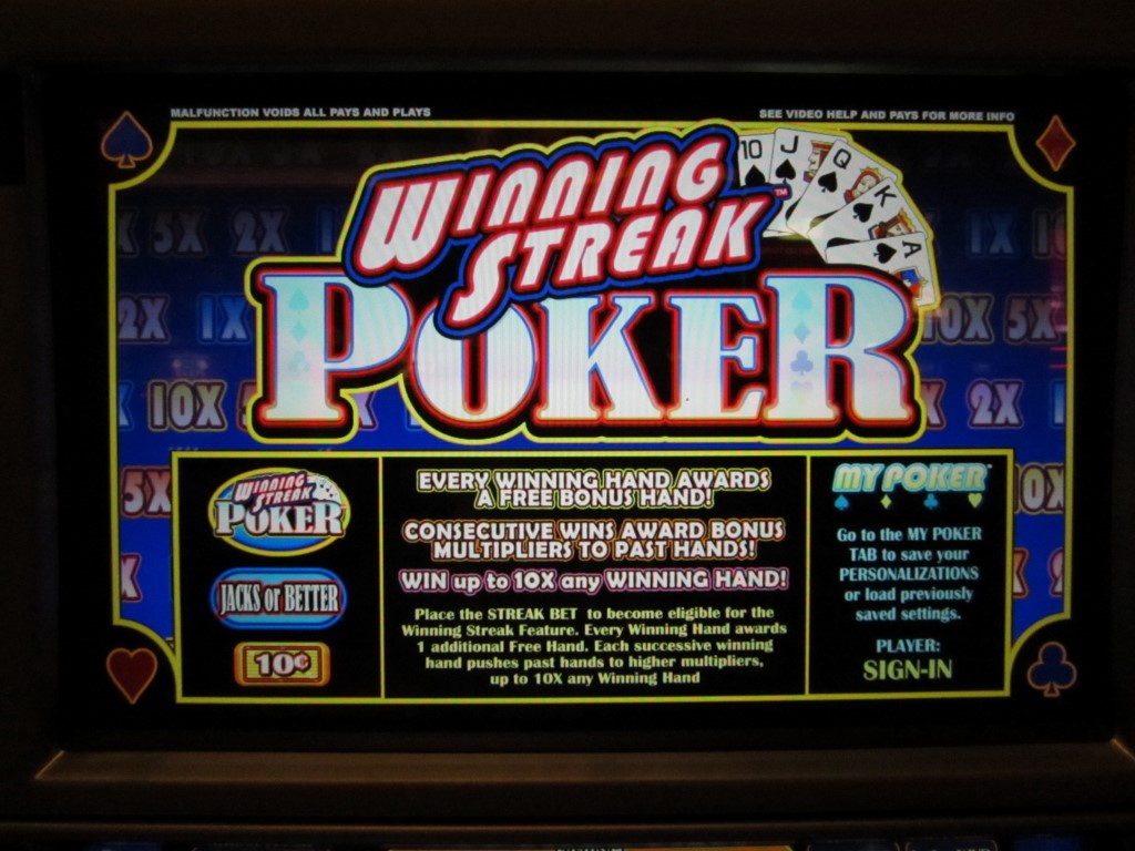 Winning Streak é uma variante de video poker da WMS. Pode ser encontrada em máquinas que oferecem este e outros jogos de video poker com a indicação "MyPoker" e "Multi-Game Poker". A essência do Winning Streak é que o jogador continua jogando enquanto continuar a obter mãos vencedoras.