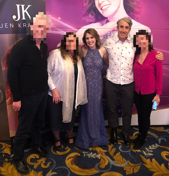 Após o show, Jen cumprimenta qualquer membro da plateia que deseje tirar fotos. Aqui está uma com o meu grupo. Tivemos uma conversa agradável sobre uma instituição de caridade que ela apoia, a Magicians without Borders.