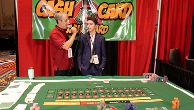 A seguir, temos o jogo Cash Card. Este foi inventado por um jovem de 18 anos, que me impressionou bastante. É mais uma forma de jogar roleta em lugares como a Califórnia e Oklahoma, onde a roleta tradicional é ilegal. Utiliza um baralho modificado e o jogador simplesmente aposta na próxima carta a ser distribuída.