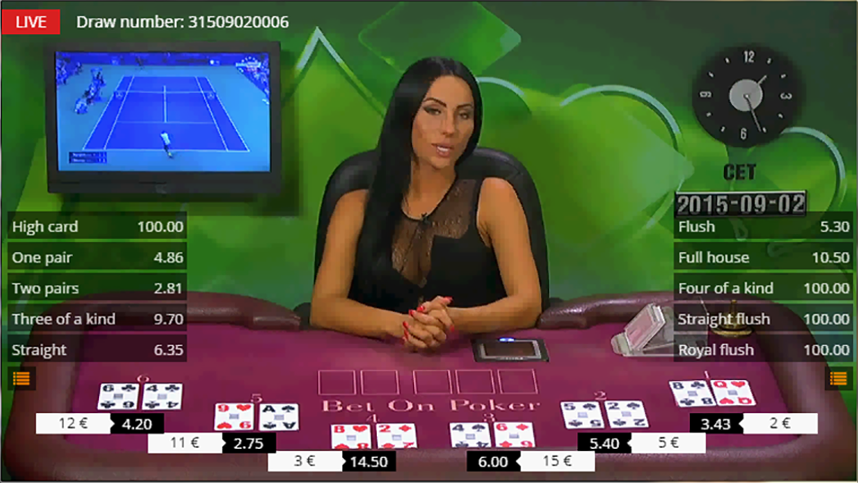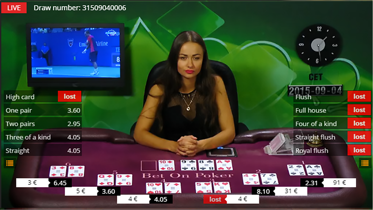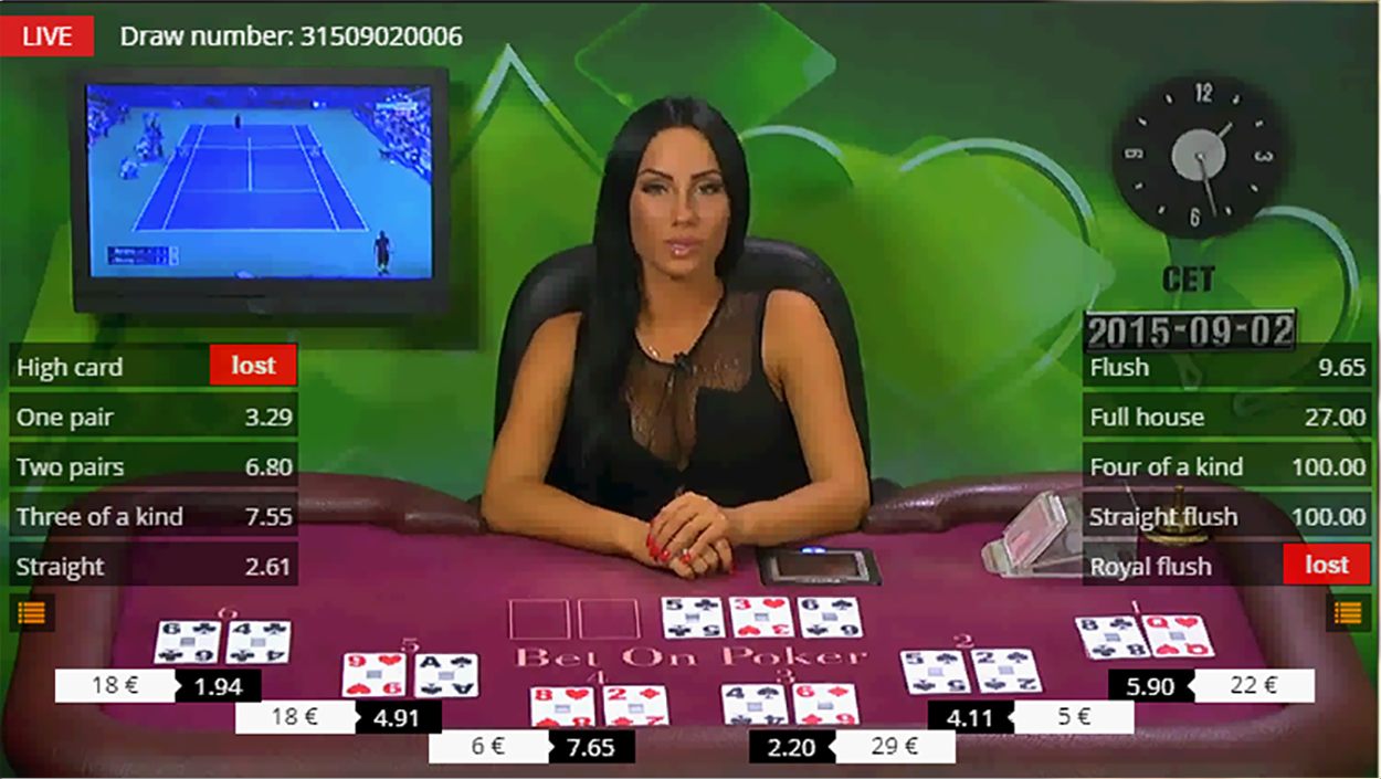 As marcas de cassino ao vivo onde já vi apostas em poker são Bet Construct , BetGames e TvBet .