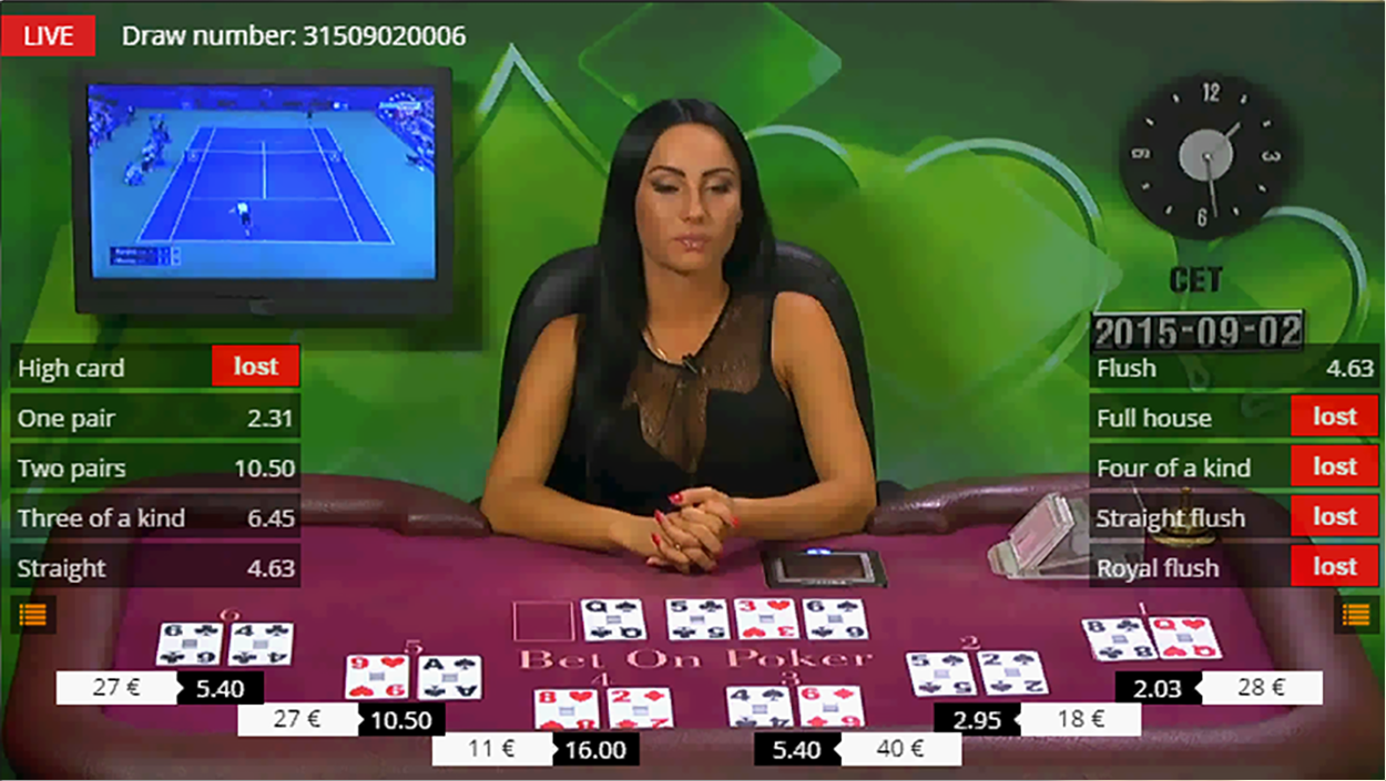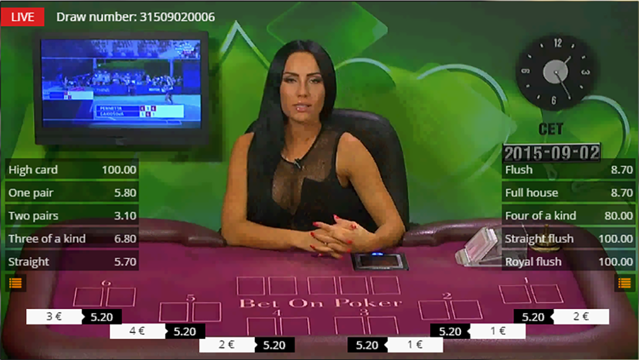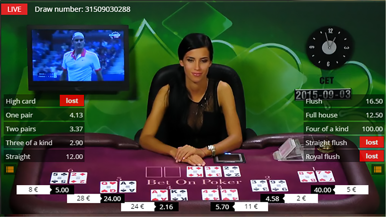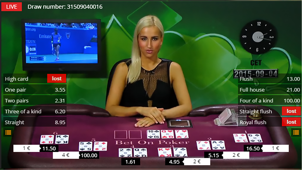As marcas de cassino ao vivo onde já vi apostas em poker são Bet Construct , BetGames e TvBet .