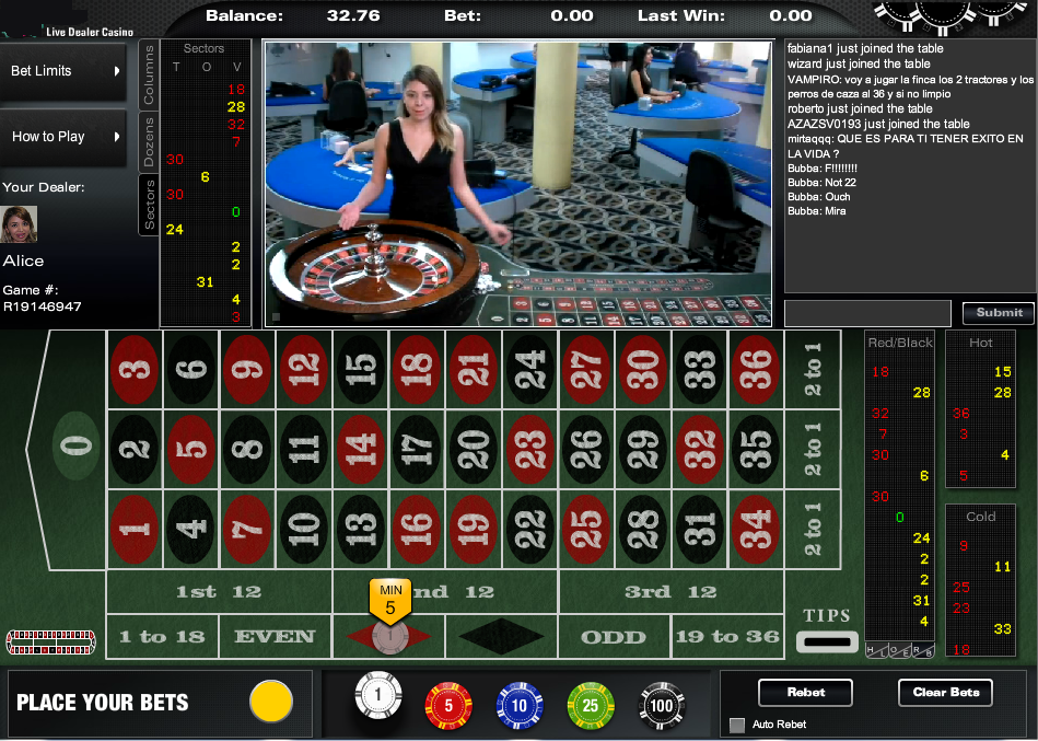A Visionary iGaming mostra o histórico dos últimos 13 números, bem como os seis mais populares e os seis menos populares. No entanto, o que me chama a atenção é a caixa de bate-papo. Ela me ajuda a praticar meu espanhol.