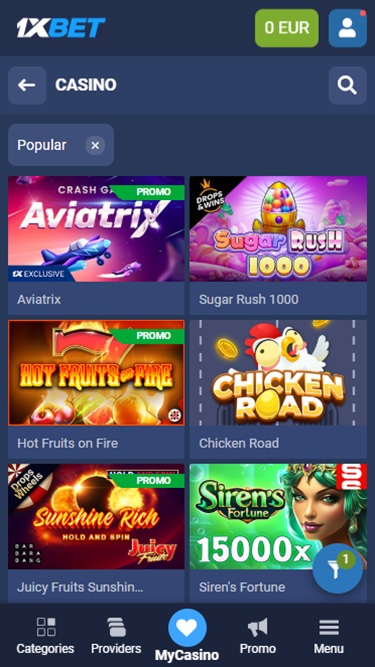 Abaixo está uma lista das promoções atualmente oferecidas no cassino 1XBET.