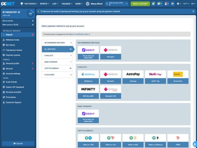 O sistema bancário da 1XBET é fantástico, pois o site oferece depósitos e saques usando carteiras eletrônicas e cartões de crédito. A velocidade de saque é excelente, com pagamentos processados em até 15 minutos. Além disso, não há limite mínimo para saques, o que é ótimo.