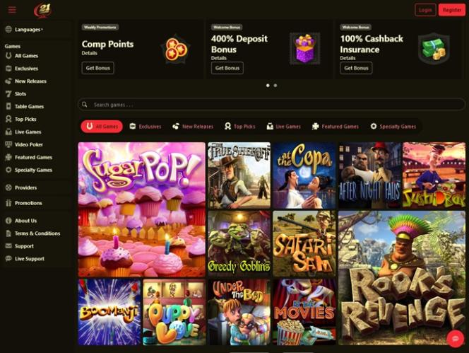 O 21Grand Casino utiliza o software da BetSoft, Genesis Gaming, Rival, Saucify, Vivo Gaming, Arrows Edge, Radi8 Games, Fresh Deck Studios, Woohoo Games, Qora Games, Genii, Dragon Gaming and Dragoon Soft , o mesmo que também é encontrado em cassinos online de melhor qualidade. O cassino está disponível tanto para download quanto através de uma plataforma online.Outros jogos