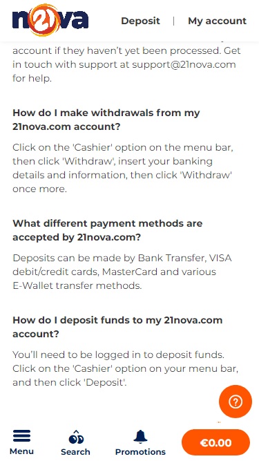 21nova Casino não recebeu o endosso do Wizard of Odds.