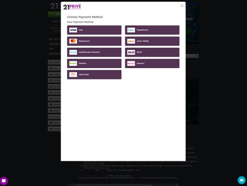 OKOutro cassino do grupo White Hat Gaming, o 21Prive, é um bom cassino com uma generosa oferta de brindes. Devo alertá-lo sobre seus bônus de boas-vindas. Skrill ou Neteller estão excluídos de seus bônus de boas-vindas e, se reivindicados, confiscarão os ganhos.