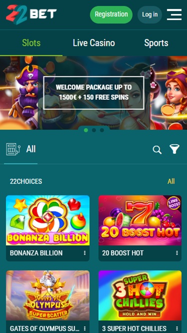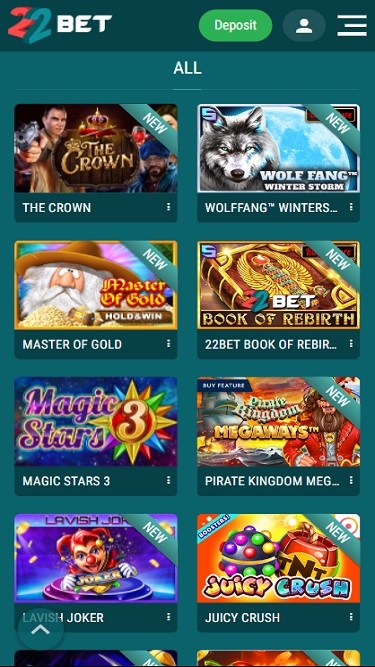 A 22Bet oferece uma seção completa de apostas esportivas, cassino com crupiês ao vivo e eSports, complementando a seleção padrão de jogos que você encontrará.
