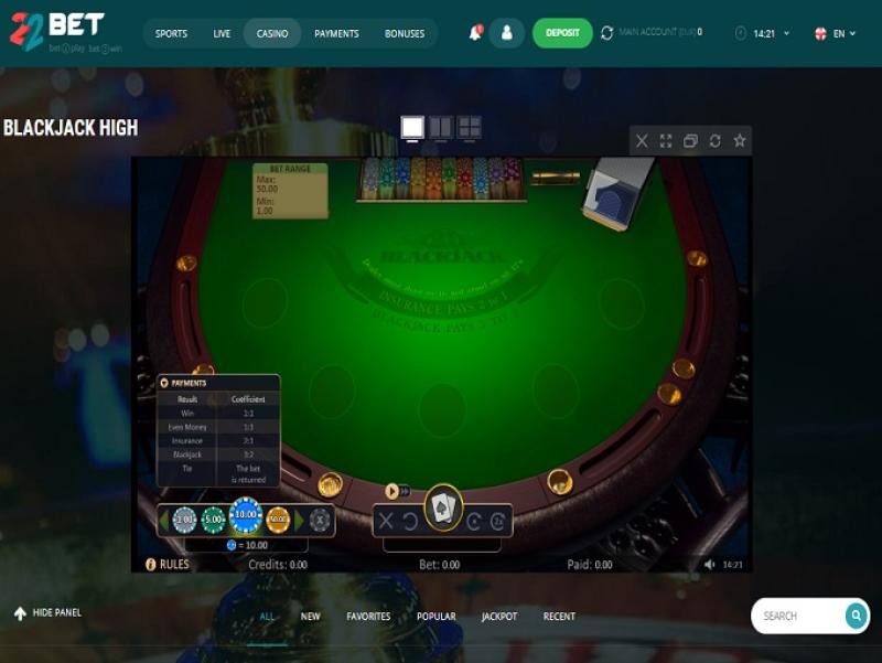 22Bet Casino Blackjack (Playtech)Expandir