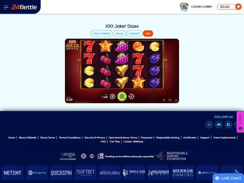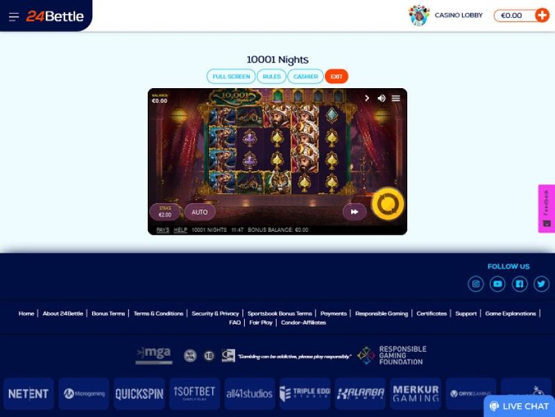 O 24Bettle é um cassino online fundado em 2015 e operado pela Condor Affiliates. O cassino opera em áreas de apostas regulamentadas e possui uma vasta biblioteca de jogos, o que, aliado a termos razoáveis para bônus e uma gestão competente, faz do 24Bettle um excelente lugar para jogar.