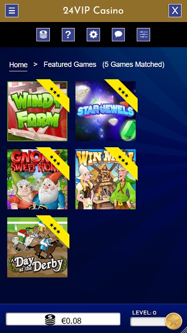 Capturas de tela do 24VIP Casino