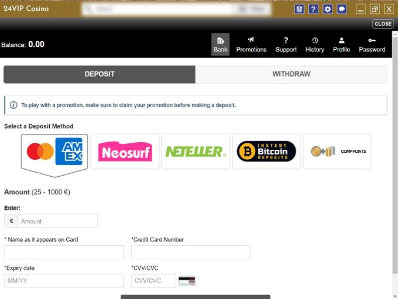 Opções bancárias no 24VIP Casino