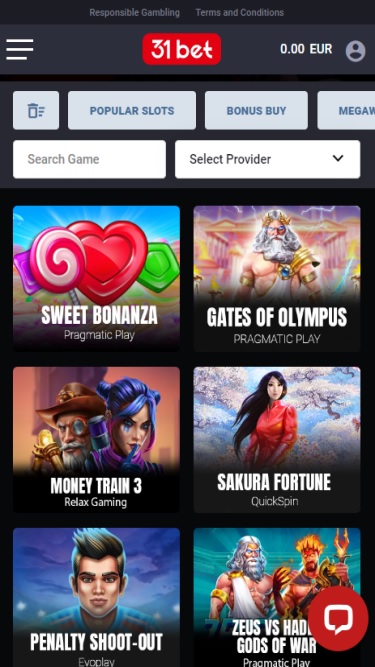 Pragmatic Play, Kalamba e Stakelogic são alguns dos membros da indústria de iGaming que fornecem conteúdo de cassino online de alta qualidade para este site de jogos. A biblioteca de jogos do 31bet Casino não está entre as maiores que já vimos, mas é divertida e o jogador pode esperar muita diversão. Toda a coleção de jogos, é claro, pode ser acessada de qualquer dispositivo portátil - em qualquer lugar.