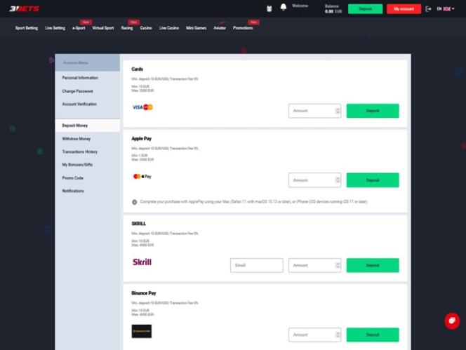 Como o próprio nome indica, o 31Bets é principalmente uma plataforma de apostas esportivas. Embora a marca ofereça uma extensa lista de jogos de cassino, os jogadores também podem apostar em alguns dos eventos esportivos e de e-sports mais populares do mundo. Apostas ao vivo, apostas em corridas e odds favoráveis estão disponíveis, proporcionando uma experiência completa de apostas.
