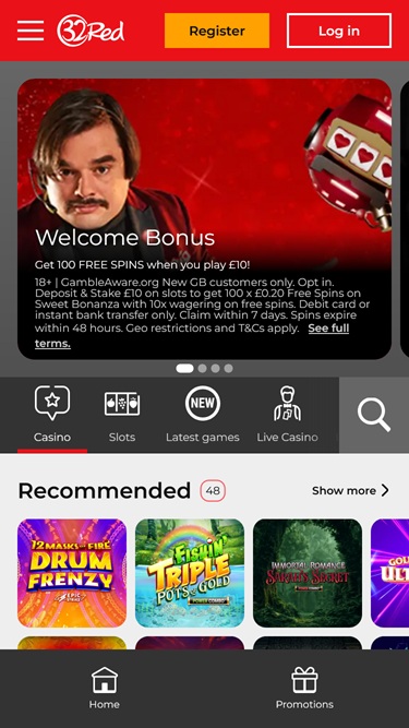 O 32 Red sempre esteve conectado ao Reino Unido, o que eu gostei, pois confio nesses sites. Boa variedade de produtos, incluindo bingo e um bom cassino com alguns jogos que não encontrei em nenhum outro lugar. Os saques funcionam, mas não são rápidos para mim, mas ainda assim são bons. Muitas promoções regulares para depositantes.