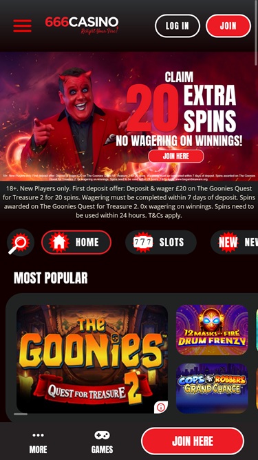 A White Hat Gaming está determinada a te mandar para o inferno com o lançamento do 666 Casino. O cassino traz muitos dos padrões da White Hat, incluindo uma vasta biblioteca de jogos, termos de bônus decentes e uma longa história de reputação. Este operador certamente torna o inferno atraente, e nós recomendamos que você vá lá e jogue neste site de apostas.