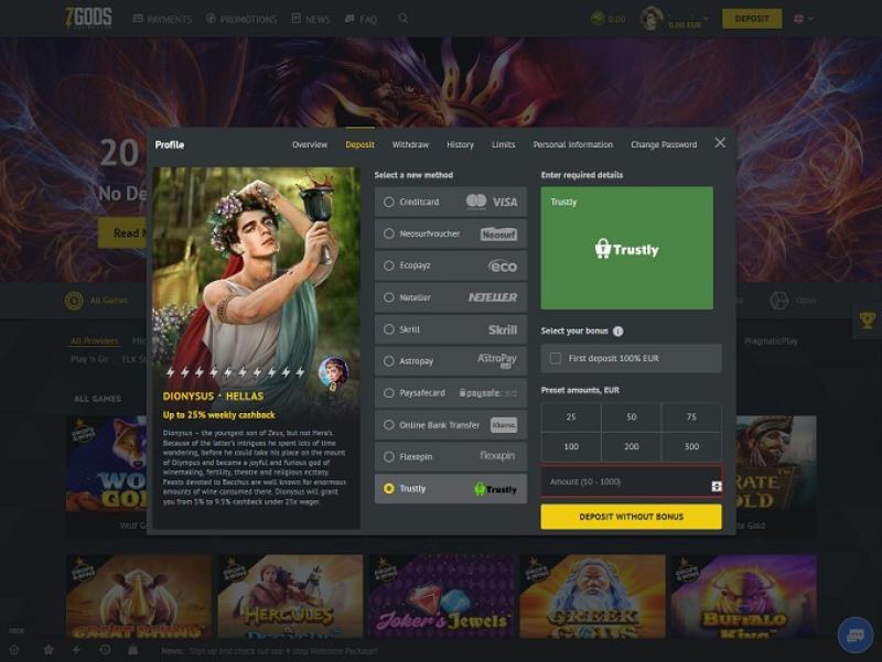 O site deles dizia "Pacote de boas-vindas épico". Bem, devo admitir que isso é completamente verdade. Novos jogadores estão aqui para uma surpresa. Você não encontra esse tipo de oferta em nenhum outro lugar. Bem, ofertas melhores podem estar disponíveis em algum lugar, mas na maioria dos casos, são de cassinos desonestos. O cassino 7 Gods é um bom cassino com ofertas generosas e uma enorme variedade de caça-níqueis para escolher. Gosto do design do site deles e é muito fácil de navegar.