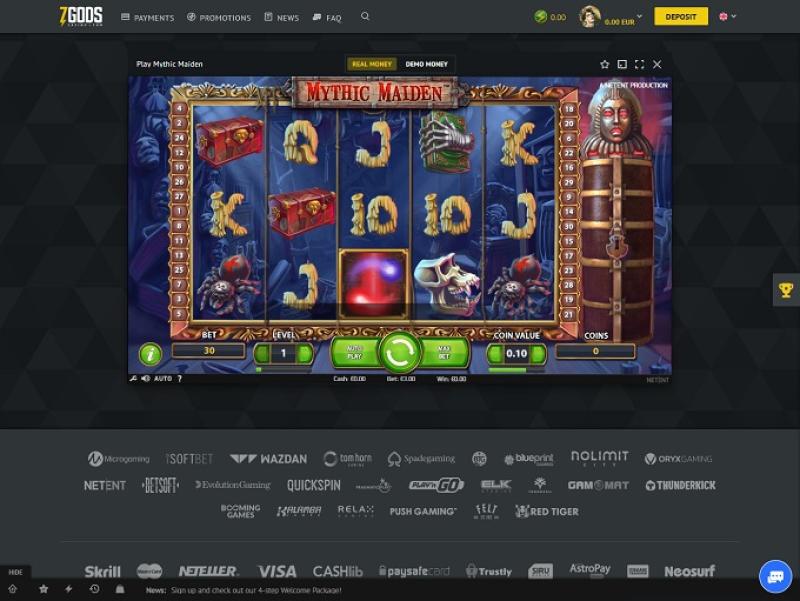 O 7 Gods Casino é alimentado por Microgaming, BetSoft, ELK Studios, iSoftBet, Play'n GO, Quickspin, Relax Gaming, Yggdrasil, Wazdan, Booming Games, Pragmatic Play, Nolimit City, Felt Gaming, Red Tiger Gaming, Spadegaming, Games Global, Blueprint Gaming, Push Gaming and Tom Horn Gaming e os jogos do casino são disponibilizados através de uma plataforma de jogo instantâneo baseada na web. Isto significa que tudo carrega através do seu navegador de internet, em vez de através de um software para descarregar. O casino também é totalmente compatível com dispositivos móveis, permitindo que os jogadores acedam ao site utilizando o seu smartphone ou tablet.