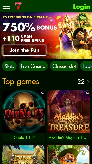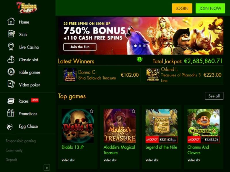O 7Spins Casino é um site de apostas online fundado em 2008. O cassino está sediado na Costa Rica e conquistou a reputação de ser um dos poucos cassinos de qualidade que utilizam o software da TopGame. O site passou recentemente por uma reformulação, oferecendo uma aparência mais moderna aos usuários, além de uma plataforma com crupiês ao vivo que permite jogar blackjack, roleta e bacará.Informações do cassino