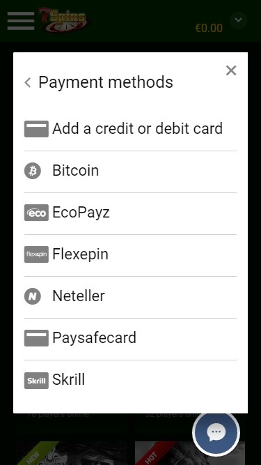 O 7Spins Casino é alimentado por BetSoft, Vivo Gaming, Pragmatic Play and Octopus Gaming , que oferece aos jogadores a oportunidade de jogar através de um software que pode ser baixado.Outros jogos