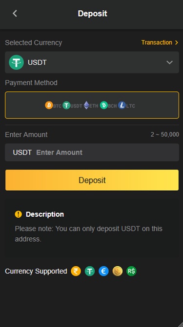 Esta plataforma de jogos de azar gira totalmente em torno do uso de criptomoedas como principal método de pagamento. Os apostadores podem utilizar criptomoedas como Tether , Litecoin , Bitcoin , Bitcoin Cash e Ethereum .