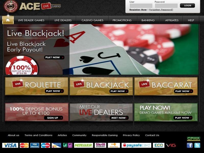 O Ace Live Casino é um site de apostas online com sede na Costa Rica. O cassino oferece um visual arrojado e sofisticado aos seus clientes, que têm ficado satisfeitos com os rápidos pagamentos e a grande variedade de opções bancárias. O foco principal está nos jogos com crupiês ao vivo, transmitidos ao vivo.Informações do cassino