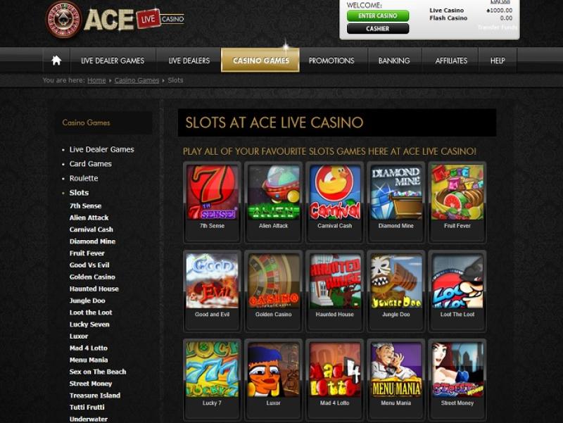 O Ace Live Casino oferece uma pequena seleção de 21 caça-níqueis em vídeo, mas os jogos parecem datados e carecem de recursos presentes em muitos outros sites de apostas online. Além disso, não há jackpots progressivos disponíveis no momento.