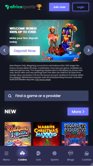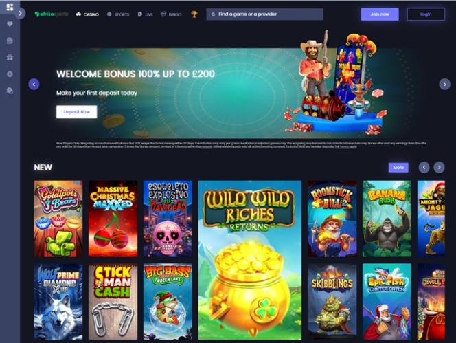 A AfricaSports, anteriormente conhecida como Casinex, é um cassino online que apresenta sua impressionante seleção de jogos de cassino e opções de apostas esportivas para jogadores principalmente da África do Sul e do Reino Unido. A marca oferece uma ampla variedade de jogos, incluindo caça-níqueis com dinheiro real, jogos com crupiês ao vivo, jogos de prêmios instantâneos e jogos de mesa, além de diversas promoções e bônus.