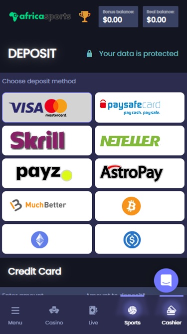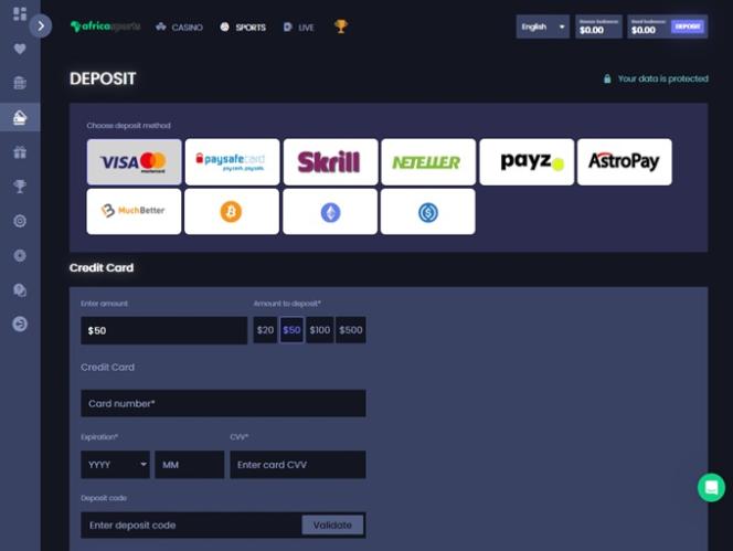 Como você provavelmente já imaginou, os jogadores também terão acesso a uma ampla seleção de opções de apostas esportivas. Como o nome da marca sugere, a AfricaSports oferece uma seção de apostas esportivas onde você poderá apostar em diversos eventos esportivos e de eSports ao redor do mundo, seja antes do início das partidas ou durante as transmissões ao vivo.