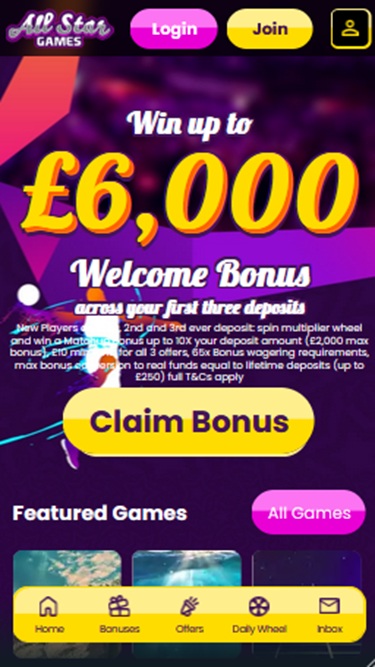 All Star Games é um site de apostas online fundado em 2017 pela operadora de cassino Jumpman Gaming Limited, o mesmo grupo que administra o Amazon Slots, bem como diversos sites de jogos de azar de marca branca. O cassino possui uma grande variedade de jogos, mas infelizmente os requisitos de apostas de bônus muito altos, os tempos de pagamento lentos e os limites de saque baixos impedem que este cassino seja sequer o que eu consideraria decente.