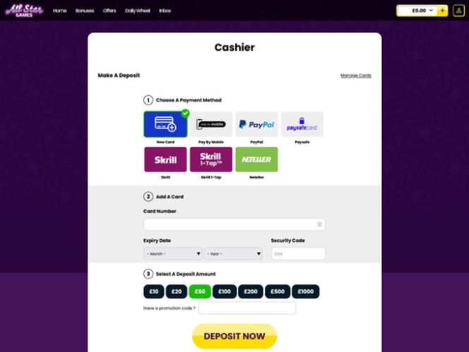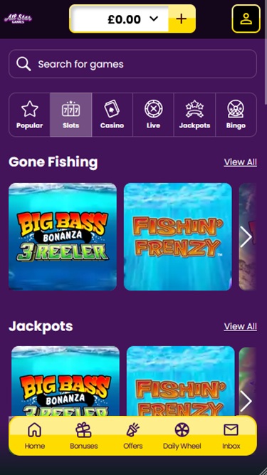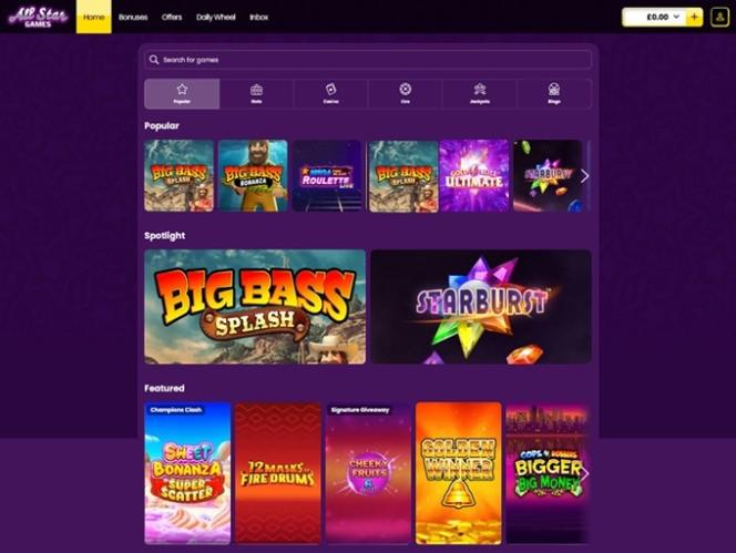 A All Star Games é alimentada pela Microgaming, Net Entertainment, Playtech, 1x2gaming, Barcrest, Big Time Gaming, ELK Studios, EYECON, lightningboxgames, Oryx, Play'n GO, playson, Quickspin, Rabcat, Saucify, Thunderkick, Yggdrasil, Realistic Games, Booming Games, Pragmatic Play, Nolimit City, Red Tiger Gaming, Spinomenal, Red Rake Gaming, Fantasma Games, Spin Games, Skywind, Triple Edge Studios, Northern Lights Gaming, Fazi, Stormcraft Studios, Switch Studios, Bulletproof Games, All41 Studios, Gluck Games, Gameburger Studios, Pulse 8 Studios, Neon Valley Studios, Golden Rock Studios, Shuffle Master, SpinPlay Games, Real Dealer Studios, GONG Gaming, Blue Guru Games, On Air Entertainment, Buck Stakes Entertainment, Design Works Gaming, Games Global, 2by2 Gaming, Ainsworth, Ash Gaming, Bally Technologies, bluberi, Blueprint Gaming, Jumpman Gaming, Leander Games, Merkur Gaming, NextGen, Tom Horn Gaming, WMS, Inspired Gaming, Gaming Realms, Genii, SG Interactive, Gamomat, Red7Mobile, Scientific Games, Reel Time Gaming, Authentic Gaming, Iron Dog Studio, Old Skool Studios, Foxium, Betdigital, Just For The Win, The Games Company, Storm Gaming Technology, MetaGU, PearFiction Studios, Wild Streak Gaming, Slingshot Studios, Fortune Factory Studios, Jade Rabbit Gaming, 4ThePlayer, AvatarUX, Gamevy, Crazy Tooth Studio, High 5 Games, ReelPlay, Alchemy Gaming, Rarestone Gaming, Snowborn Games, Boomerang Studios, Hacksaw Gaming, Max Win Gaming, Gold Coin Studios, Half Pixel Studios, Peter And Sons, Aurum Signature Studios, Lucksome Gaming, Area Vegas, RAW iGaming, Wishbone Games, HammerTime Games, INO Games, Nailed It! Games, Atomic Slot Lab, Neko Games, Reel Kingdom and Light & Wonder e os jogos do cassino são fornecidos por meio de uma plataforma de jogo instantâneo baseada na web, que carrega os jogos diretamente no seu navegador de internet. O site também oferece suporte a jogos para dispositivos móveis, permitindo que você jogue pelo seu smartphone ou tablet.