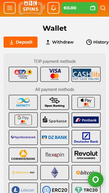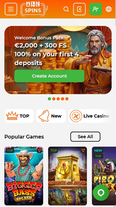 Mas quem quiser saber todos os detalhes do AllSpins deve visitar a página de termos e condições no rodapé da página inicial, a seção de jogo responsável, a política de privacidade e a seção de suporte ao cliente. Você pode abrir o menu suspenso na parte superior do site para acessar conquistas, a loja, torneios e todas as categorias de jogos.