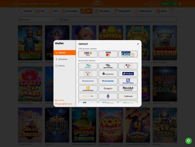 Ao acessar o site, fomos recebidos por uma página inicial que nos permitiu depositar e começar a nos divertir imediatamente, além de nos oferecer a opção de escolher o pacote de boas-vindas inicial. A página inicial também nos permite navegar pelas categorias de jogos e ver os títulos mais populares.