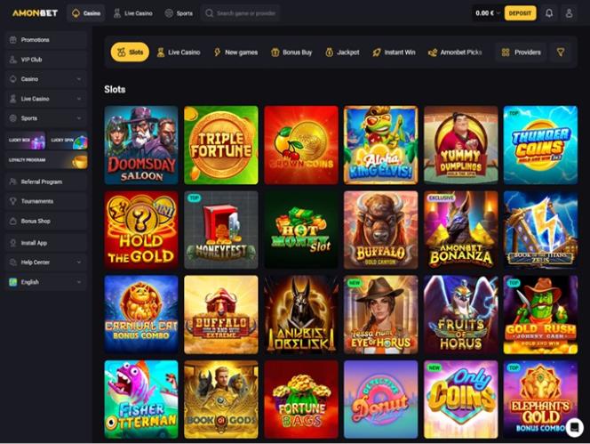 Antes de mais nada, recomendamos explorar todos os fantásticos jogos de slots online disponíveis no Amonbet Casino. O site de jogos oferece uma seleção impressionante desses jogos populares, que você pode desfrutar em diversas categorias e gêneros, incluindo Megaways, bônus de compra, Hold 'n' Link, jackpots, slots clássicos e muito mais.